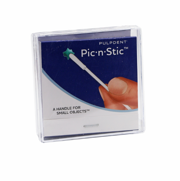 The original “handle for small objects” has numerous applications from dentistry to model making to replacing hearing aid batteries. The 2” long stick is 2 mm in diameter with an adhesive tip on one end.